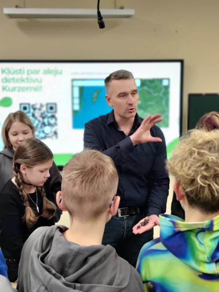 - Expert Gvido Leiburgs helped pupils understand that alleys are not only important islands of biodiversity — home to birds, insects, lichens, mosses, and mushrooms — but also a valuable cultural heritage, as they are often planted near manors, castles, or lead to ancient cemeteries, preserving evidence of the past landscape and people’s lifestyle.