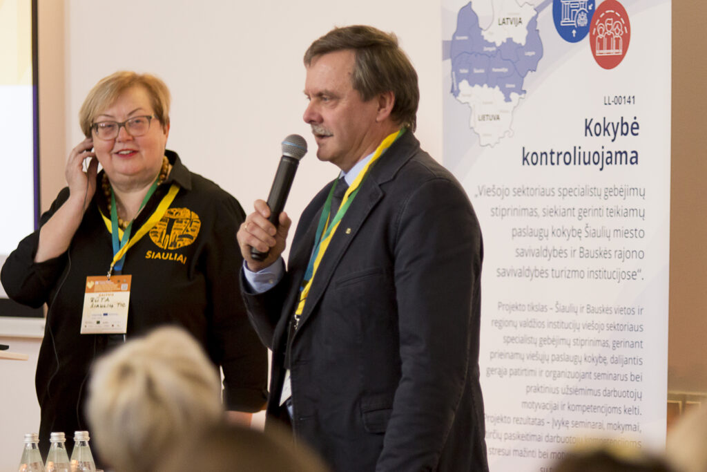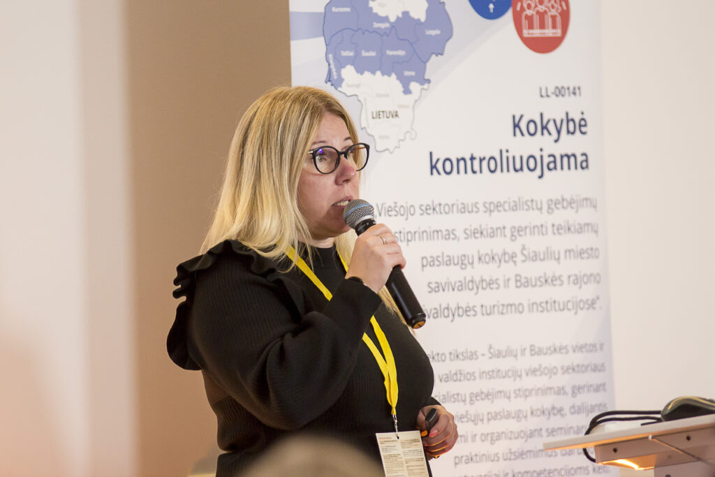 On December 2, the modern „Suncity Hotel“ in Šiauliai hosted the final event of the project “Capacity building of public sector professionals to improve the quality of provided services in local and regional authorities of Siauliai and Bauska regions,” No. LL-00141, arch. “Quality under Control”, bringing together more than 100 tourism and public sector specialists from Lithuania and Latvia. Throughout the two years of the project, we worked to improve the quality of services provided, so the main theme of this event was “Improving the quality of services provided by the public tourism sector in Lithuania and Latvia.” Throughout the day, participants listened to informative presentations on the quality of tourism services, regional cooperation, changing traveler habits, and effective communication. There were also discussions about new opportunities and challenges in the tourism sector, and the project implementers shared their experiences with an Etaplius journalist, who prepared a detailed report on the project. TV report (Lithuanian language) can be viewed here