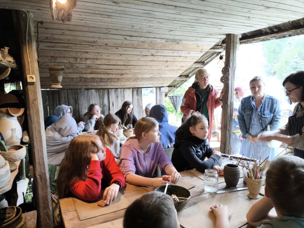 The workshop, which was part of the “Joint Capacity Building for Better Cultural Understanding through Art” project, began in Ludza, where participants visited the Ludza Museum of Local History. They later traveled to the Kārsava Culture Centre and Nautrēni. The first day culminated in a masterclass with ceramic artists Mairita Folkmanis and Ivo Folkmanis at the “Jaungailumos” studio, followed by ceramic kiln firing.