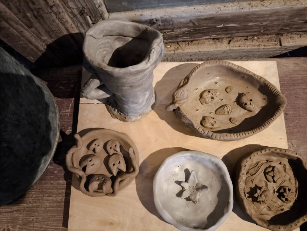 On the final day of the workshop, participants unloaded the fired ceramic pieces from the kiln and took part in the St. Peter’s Day celebrations in Rogovka. During the festivities, the “Lotigola” motorcycle club entered the town center, and children enjoyed bouncy castles and clay workshops.