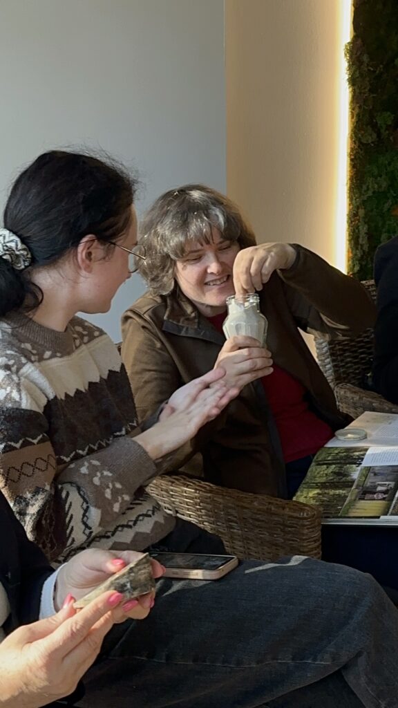 During the practical part of the training, participants had the opportunity to explore a wide range of geological literature and learn about the geological origin and development of Lake Plateliai. Much attention was given to the display of geological specimens – various rocks and stones that participants could touch and examine up close to appreciate their unique features.