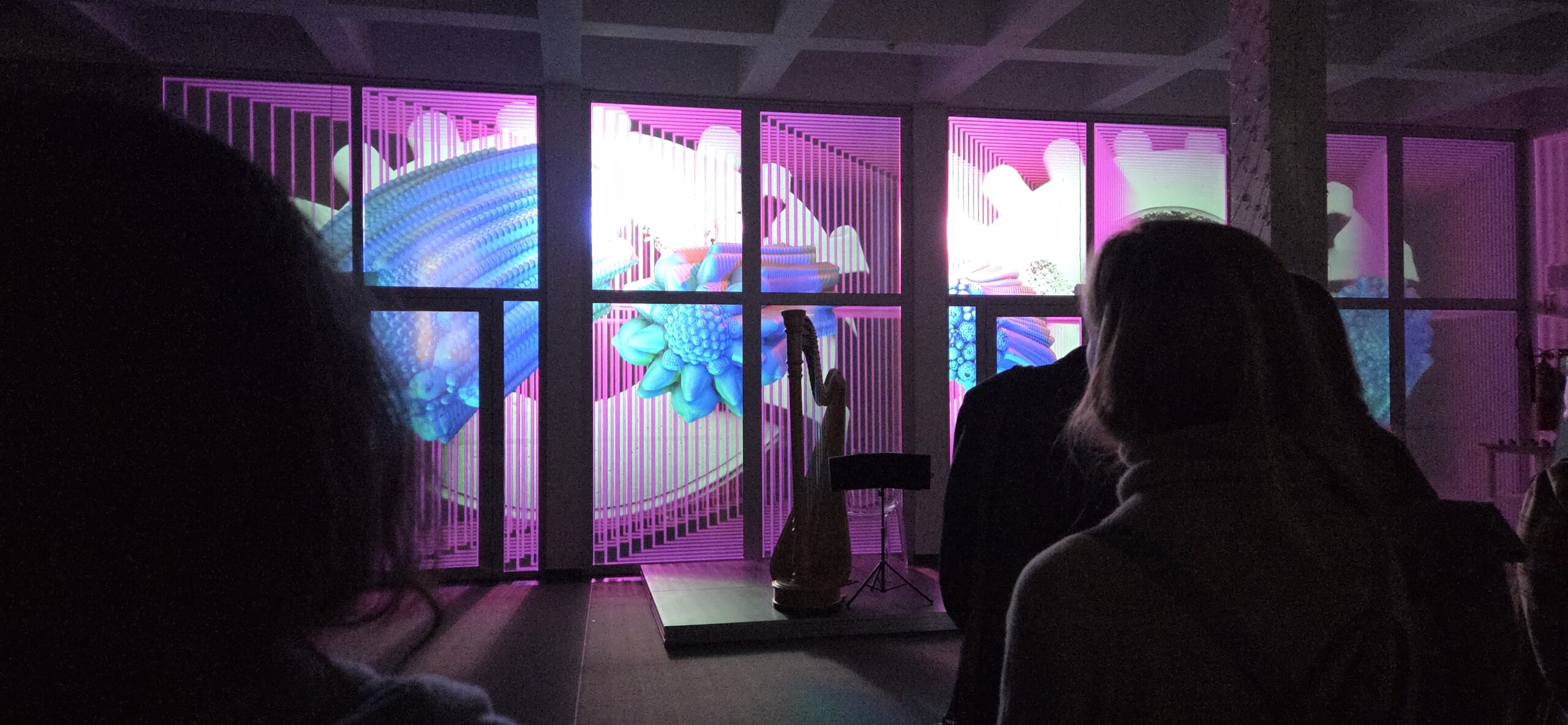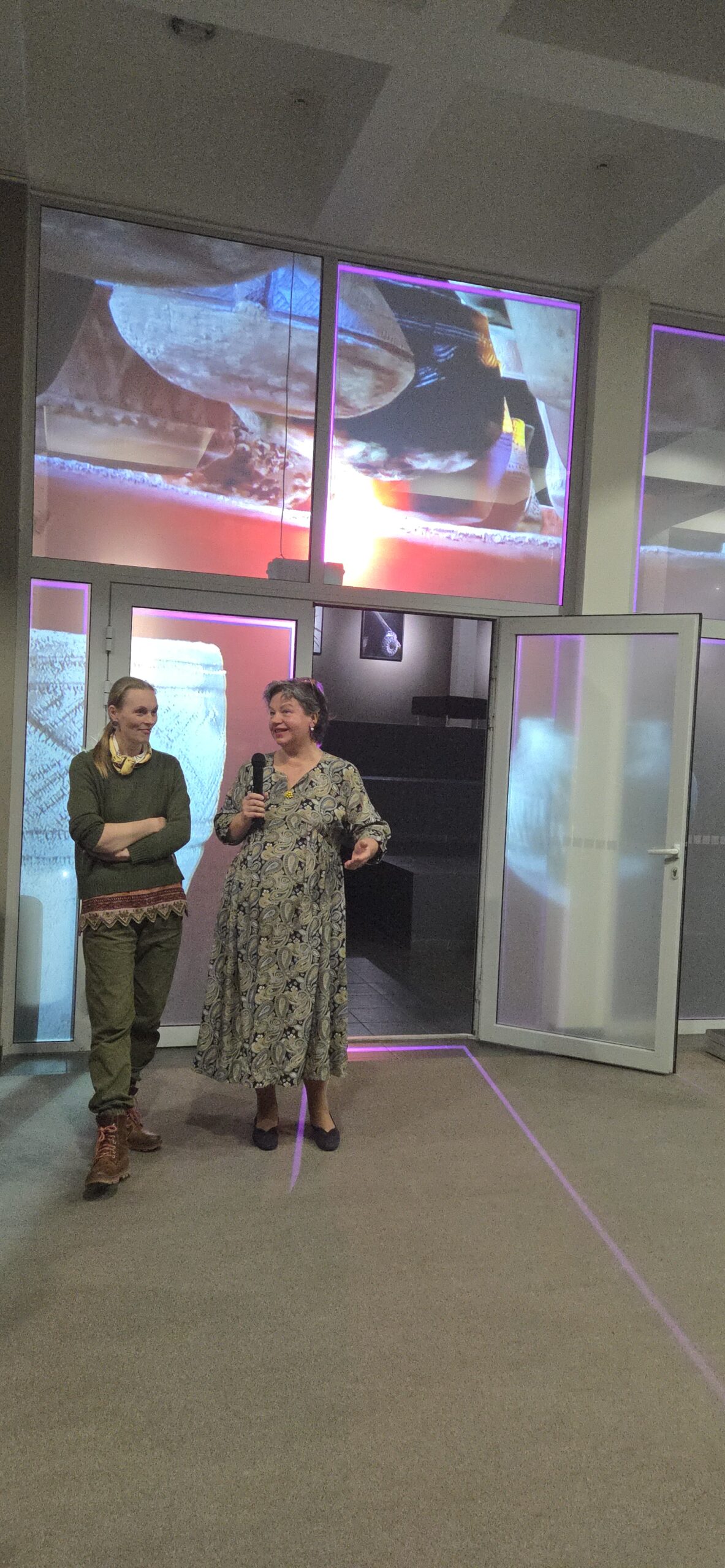 At the heart of the exhibition is a 3D video installation created by the Lithuanian video artist Rimas Sakalauskas. His work was inspired by the ceramic artworks of Kristina Motuzienė and Ramunė Pranckevičiūtė. In a large-scale projection, viewers can observe how ceramics are transformed in a digital environment – through moving lines, lights, textures, and rhythms. This audiovisual experience evokes the feeling that clay and sound merge into one unified “meta-ceramic” world.