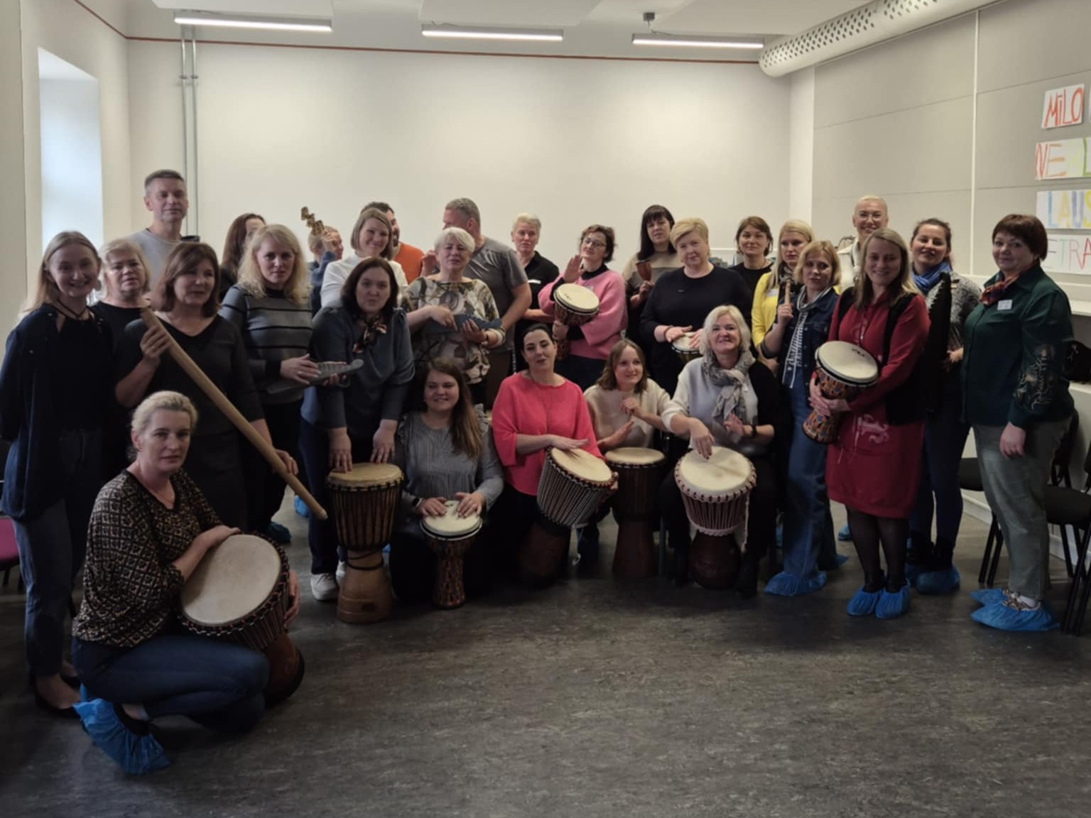 During the training, there was an opportunity to engage in situation simulations and also try out various inclusive activities. Participants discussed their experience in organizing inclusive processes, planned future cooperation opportunities. They also visited the Kuldīga Children and Youth Centre and participated in a music class, had the opportunity to play music freely and at the end, a joint song was created.